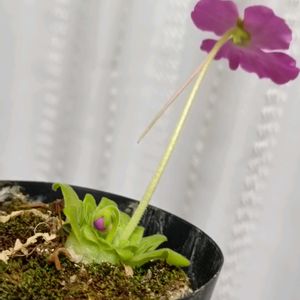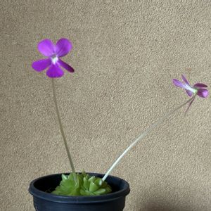 皆さま、こんにちは😃 ちょいと! ややこしい投稿で、 申し訳ないです。さて 写真1枚目 2023年に購入した、 ピンギキュラ グランディフローラ その ネットでの写真です。 2枚目写真がその時の株に花が咲いた、写真 3枚目写真がその 購入した 株の今現在の写真で、株別れ? ムカゴ別れで、小さな株になっている写真です。 株が小さいので、花は咲きません! で! 4枚目写真は、 苔育成トレーにひとりばえではえたムシトリスミレ、 5枚目写真が、本日、開花した写真です。 この、ひとりばえ ムシトリスミレの正体! ピンギキュラ グランディフローラとわかりました。 しかし、不思議です。 三年前にどういう訳か、苔トレーに種が飛んで、 3年かかって初開花! まことにもって、 不思議な話しです。