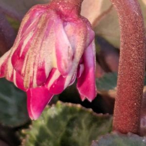 💜寄せ植え作りました💛 ①11月にお迎えしていたシクラメン『ドラゴン』🐉…ブルーシクラメンと言われているけど、どう見ても紫💜ですよね😅💦 お高かったのでとても大きな苗🌱は買えなくて、小さな苗🌱をお迎えしていました。それなのにそのまま置いてしまってて、今更おひとり様にするには小さかったので寄せ植えにしました。 ②八ヶ岳からの贈り物:ビオラ『一期一会』というビオラ💜💛が可愛くて合わせてみました。 白地に紫の縁取りのあるプリムラジュリアン🤍💜も隣りに。 色合いは少し控えめな寄せ植えになりました。 ③『ドラゴン』をお迎えした時はこんな感じ。花の色💜も葉っぱの色💚も濃かった💦 もっと早く植えればよかった〜😓 ④今日はこちらではこの冬一番の冷え込みでした。さすがに昼間の陽が差している時に水遣り🚿だけしました。2つだけあるクリスマスローズの鉢を覗いてみると👀、なんとツボミが1つ付いているのを発見💡…嬉しい〜🙌✨ ⑤実は10月終わりに馬酔木(アセビ)の苗🌱2種類お迎えしていました。 GSの皆さんの投稿でこの花を知り、可愛いなぁと前々から思っていましたが、たまたま100円の見切り品があり、ダメ元で買って植えていました。 上↑が植え替えた頃のツボミ。 なんか咲くのはまだまだ先のようですね。ツボミの期間が相当長いようですが、咲くのが楽しみ☺️💕 うまく咲いてくれるといいんだけど…💓💓 今日はさすがに寒かったです〜🥶 皆さん、体調に気を付けて下さいね😊✨