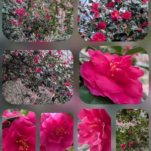 細い枝に赤、ピンク、白などのウメのような小花を多数咲かせます。尖っており、硬い、小さい葉を持ちます。