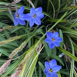 ① カレックスの中からハナニラが咲きました💙 ② ユッカグロリオサ ブライトスター 前回投稿した1月より赤が増してきました😊 ③ エリカ 満開になり玄関前が華やかに・・・ ④ スナップエンドウ ベランダ、プランター植えに実がなってきました🫛 地植えはまだ花も咲いてません😅