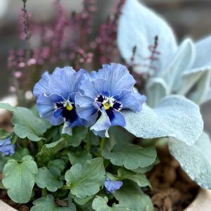 *ビオラ レディ *カルーナ ガーデンガールズ *セネシオ エンジェルウィングス 今日作った寄せ植えです。 やっぱり、ブルー可愛い🩵