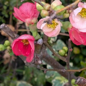 1️⃣2️⃣源平咲きのボケ(木瓜)の花が咲いてました。