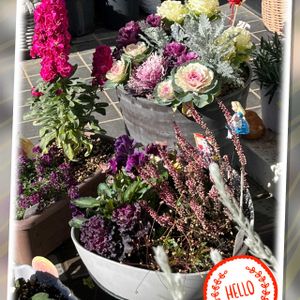 タワーリングの寄せ植え 土曜日に行ったWSの余韻を まだ引きずってる私です( ꈍᴗꈍ)💕 その時に撮った園内の寄せ植えが あまりに素敵だったので 撮らせて頂きました🤳 リングバスケットを タワー型🗼のトレリスに通して こんなに華やかな植え込みに💖 タワーもリングも小さいサイズなら うちの狭小庭でも出来るかな?🤭 水やりはリングを外して 別の場所でやれば 下のお花たちにも影響なさそうですね♪ ⑤WS後、参加者全員の作品の集合写真🤳 選ぶ色、色付け方、デコパージュの柄、 レイアウトによって様々で 皆さんの個性に感心しきりでした✨ 🏷カラフルな火曜日 🏷秘密の花園♡ 🏷花咲く乙女たち♡ 🏷スライドショー♪ 参加させて下さい💐( ꈍᴗꈍ)