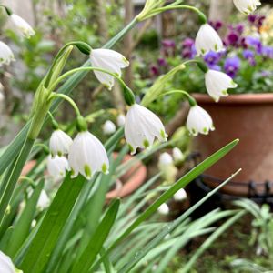 🏷️今日のお花 スノーフレーク ❶❷ エゴの木の下で咲くスノーフレーク ❸ シレネユニフローラも近くで ❹ メゾンドビオラの寄せ植え