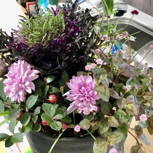 今日のお花🥬ハボタン💜✨ 過去pic📸✨に見つけましたー👍 光沢ある黒から濃い紫、更に中央は緑の綺麗な🐠サンゴ系の葉牡丹✨私には珍しい💜 『残り物には福がある♪』最後の半値でラッキー購入し他は咲いてるお花の苗🌸や庭の植物を挿し芽🌱で寄せ植え🌿 昨年末、お正月🎍ピック付きで花好き叔母宅の手土産に♡