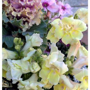 こんにちは 庭のお花は少なくなってきたけれど 寄せ植えの中のお花は花盛り キンギョソウの淡い黄色 チェッカーベリーの真っ赤な実 良いなぁ♡♡♡♡♡
