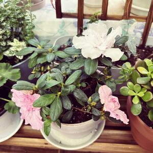 ピンク🩷のアザレアを買ったのに白🤍が咲きました✨ 紅白ぽくていいかなーぁ😊