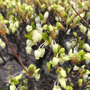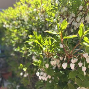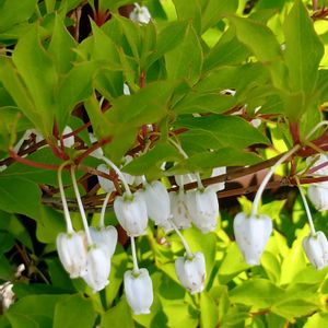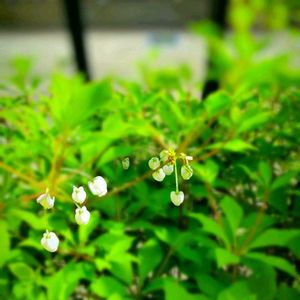 『節制』『上品』『私の思いを受けて』『返礼』。「節制」は、厳しい環境にも耐えられる強さを持っていることにちなむといわれています。「上品」は、白いつぼ形の小さな花姿に由来するといわれています。紅葉した秋の姿も美しく、一年中見どころの多い花木です。