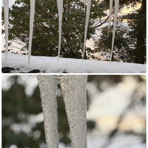 2026.2.9〜14 撮影 1枚め:2.9 17:01 夕方でこの氷柱🥶 2枚め:2.10 6:38 朝焼けと霧 ↙️:霧氷? ↘️:葉っぱの縁取りが可愛い😻 3枚め:大根 ⬆️:細い牛蒡位の太さの頭を出してきました ⬇️:葉っぱは立派なのになぁ😅 4枚め:2.14 剪定後の寄せ植え バロータの剪定、いと難し💦 消えてしまったり、自分で消したり、4回めにしてやっと投稿できました😅