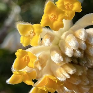 お散歩中に見たお花(樹木)たち… タイリンミツマタ×3 💛 ヤブツバキ(薮椿)×2 ❤️ 大輪三又 ⚫︎⚪︎⚪︎⚪︎⚪︎ (過去pic)