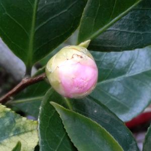 ツバキの蕾発見〜1つはピンクで1つは白〜花が咲かないと名前は分から無い〜😅 まだまだ硬そうデス〜どちらが先かなぁ🤭✨