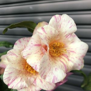 昨日の朝の撮影です。 咲き方からすると乙女椿のようですが、調べてもこの色は見つかりません。