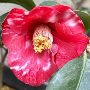 椿のお花。 お花の色が混ざって咲いています。🐝がやってきて、あまり近くにいられませんでした。