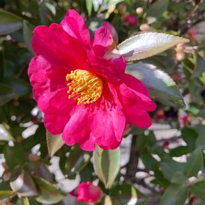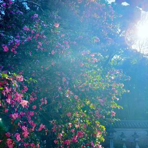 サザンカ🌺🌸🍃 12日に八幡宮へ⛩️ お参りに行きました 薄ピンク色のサザンカが 大木になっており 朝日がさして☀️ とても清々しく 感じました ⛩️「国宝」