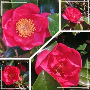 おはようございます ①毎年楽しみな白い寒椿のお花 ②低木の寒椿 紅白のお花❤️🤍 ③山茶花を見上げて 今年もありがとう🥰