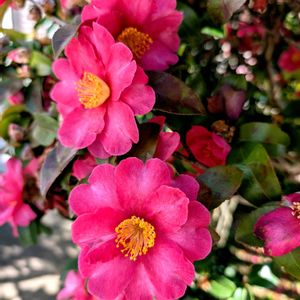 おはようごさいます😊🎀 サザンカです💗🌿💗 撮影日2026.2.3 よく行く公園で 撮影しました😊 綺麗なサザンカのお花💖 鮮やかな色合い✨✨ 目を引きますね😊 連休最終日 楽しく過ごせますように🎵🎵 今週もよろしくお願いします🤗🍓