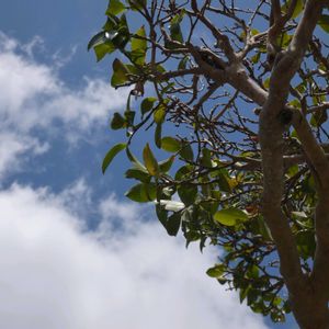 「サザンカ」 我が家のシンボルでもある巨木。 高く成長し、私たちでは剪定が難しく、先日、数年振りに庭師の方に剪定して頂きました。 葉っぱがモリモリでしたが、剪定後、こんな風に、下から見上げ小枝から空が透けて見えるんです。 芸術的とも言える技に感激しています。 🏷土曜日はお空の発表会
