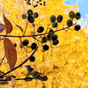 小さな公園でも 季節の移ろいを感じ 少し寂しくなります ( ´ · · ) ࿐ ࿔*:・゚🍂 1️⃣ サルスベリの実とイチョウ 2️⃣ ナンキンハゼの実 白い実がなるのですね 初めて見たかも