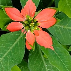 今日のお花🏷️ポインセチア🎄♥️ になんだか似ているショウジョウソウ。赤くなりかけてる葉っぱとかバイオリン型に🎻ギザギザしている葉っぱの質感とか。花なのか実なのかなプツプツとか。あら別名サマーポインセチアっていうんだ。近所の空き家の玄関先に茂った雑草です。10月04日📸武蔵野市西久保付近 ポインセチアの見本は神代植物公園大温室