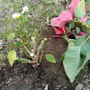 家の中で冬越ししたポインセチアを庭に植えて、バッサリと切り戻しました✂️ 短日処理🌛は、先回失敗したので、秋までに考えます🌳