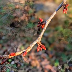 こんにちは 新成人の若者とご家族様に お祝いを申し上げます 小雪がチラ付き始めました❄ 1️⃣ 撮り方なのか赤さを増したような気のする 枝垂れ桜の冬芽 丸いのが花芽 スリムなのが葉芽ですね 2️⃣3️⃣ 庭のあちこちで 赤いお花が可愛い芋片喰! 4️⃣5️⃣ 昨日不規則なアップダウンの為 慎重に斜面の境界際を下って いつもは余り写せないお花を写しましたが 錦木には葉痕が沢山 でも枝先の小さな冬芽はアップで写せず💦