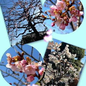 梅と桜 2月にしては汗ばむくらいの陽気 咲かなきゃ!って焦って咲いたかのようなサクラがちらほら☺️