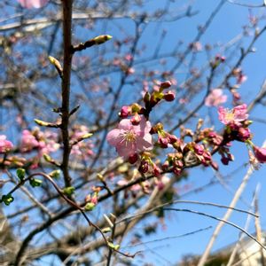 散歩道の河津桜🌸 蕾がほころんでました😊 春ですね💕︎