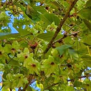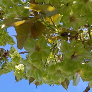 ❥❥ᴳᴼᴼᴰ ᴹᴼᴿᴺᴵᴺᴳ໒꒱⋆゚ 🌸 鬱 金 桜 🌸 昨日の朝活 ˜ᵖᵅʳᵗ ⅱ˜ 御衣黄 🌸💚の後は この子に 会いたくて ᨒ𖡼.𖤣𖥧を 登って 行きました 会いたいお花を 見に行く時は 山道も 疲れませんね 😅 標高が高いので 咲いているか 心配しましたが こちらも 咲いていました 綺麗でしたが どちらも ハリのない咲き方でした キット 水不足のせいなのかな 🤔 我が家の 御衣黄 💚 鬱金桜 どちらも 1回だけの開花で ★に なってしまい 苗を 見ると 再チャレンジしようか 悩んでいましたが どちらも 近くで 見る事が出来ると わかったので スルーします 同じような PICで ( ꈍ ꈍ ) 穏やかな日で ありますように🍀𓂃◌𓈒𓐍
