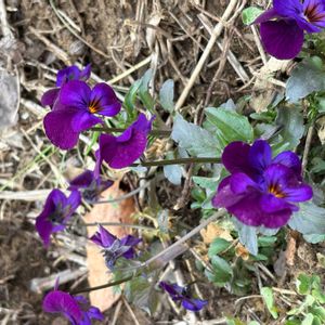 ①アジュガ 今年も咲き始めました| ‹:)~❁🌱💜 ②冬越しのカリブラコアも…*ˊᵕˋ)੭♥️