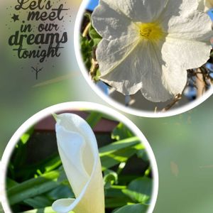 おはようございます😊 ペチュニア ナス科 フェンスにかけた鉢でまだ咲いています🤍 カラー サトイモ科 その下に地植えが開きかけています🤍 どちらも、季節はずれのお花ですががんばれ〜💕 かねーちゃん発信 🏷️白い貴婦人✨ さっちゃん発信 🏷️白い水曜日♡
