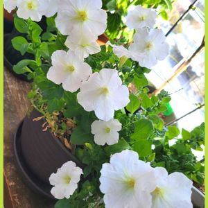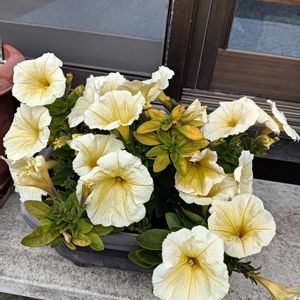 寒さの中、ペチュニアたちは意外にも元気に咲き続けています。 軒下に避難中です💦