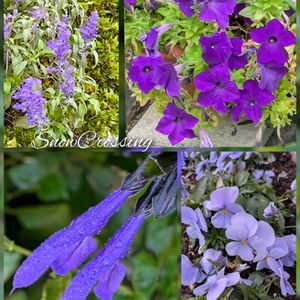 おはようございます(◕ᴗ◕✿) 紫色のお花をコラージュしてみました💜 サラリーマン川柳より 愛犬の 同情した目に 癒される🖌️