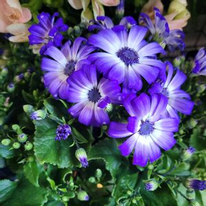 おはようございます😊 外は寒いけど空は明るく︎ ︎︎︎︎︎‐`💙☁️ ´‐𓂃 𓈒日差し⸝⸝☀️´-縁側には久しぶりにお花達カーテン越しに日差しを浴びて🥰 昨日近所の花屋へ 店内可愛いお花がいっぱい お値段手頃なお花達お迎え サイネリア💜💙🪴 リナリア💛💜 ムルチコーレ💛 ペチュニアも1ポットだけお迎えまだ寒いから育ってくれるかなぁ😉 八重クリスマスローズ🪴 朝パト ブルーのお花爽やかに開花✨ ワスレナグサ💙 ネモフィラ💙🤍 シラーシベリカ開花していました🥰 素敵な週末をお過ごしください