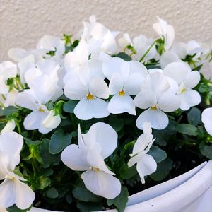 ①プレミアムビオラ ディージェイホワイト 今年はローズピンクに出会えず、ホワイトをお迎えしました♡ ②ペチュニアディーバ チェリーモーン まだ咲いています😲💗