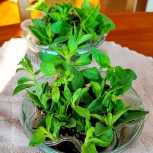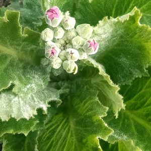 🍀おはようございます🍀 プリムラマラコイデス ローズ❣ 花色が見えてきました♬ ②ホワイト🤍の蕾はまだ奥の方 ③こぼれ種からのペチュニア💜 ギュウギュウになってきました ④スプレーストックにも蕾が 見えてきました♬ ⑤年数が経っているヒヤシンス🪻 発芽してきました!