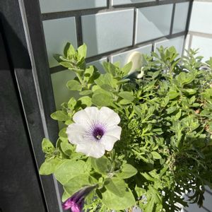 寒さの中、ペチュニアたちは意外にも元気に咲き続けています。 軒下に避難中です💦