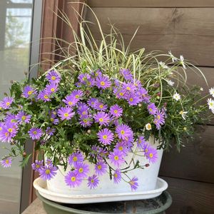 こんにちは 良いお天気になりました😊😊 我が家の鉢のパンビオはもうそろそろお別れです 今まで玄関周りを彩ってくれましたが少しずつ解体して可愛いお花は小瓶に刺してお家で鑑賞しています ①ブラキガムの寄せ植え とても花数が多く特に紫の子は華やかです この小花でこのボリューム 今私の推しです💜 ②夏に向けてのお花をお迎えして寄せ植えにしました アークトチス ラベンダー ペチュニア アークトチスのお色が優しいピンク色でとてもお気に入りです しかもほぼ多年草のように強いらしいので、秋になると地植えにしてみようかと ③④⑤ラックスたちがまだまだ咲きます 蕾もまだまだ お日様にあたってキラキラしてたので アリアドネ ピュタロス ハデス