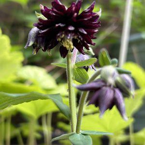 1枚目2枚目 頂き物のチョコレート色のオダマキ2種も咲きました⤴️🥰🤎 2枚目は形的に多分タワーライトブルーだと思うのですが種まきしたらこの子だけこのお色⤴️😆✨ 春の終わり、この頃はシックな色が素敵で惹かれます🥰 3枚目 久々に花木をお迎えしました😊 西洋ニワトコ ブラックレース🖤 ニワトコとくればハリーポッター✨ 大ファンの私と息子はニワトコと聞いてウズウズ😂 レンガ近くの目隠し用にシックな花木が欲しかったのでお迎えしました🥰 4枚目 ペチュニア カプチーノをメインにした寄せ植えです 📕の形の鉢は寄せるのが中々ハードルが高く球根一択でしたが植え替えついでにディコンドラとPWのヒューケラ シルバーガムドロップと一緒に寄せてみました😊 このペチュニアもプラムカコトューと同じく株幅が大きいので育ったらお一人様の鉢にする予定です😊 5枚目 少し玄関前を模様替えしました♪ パテンス系やフロリダ系のクレマチスは5月頃から強い陽射しに弱いので玄関軒下へ移動させました😊