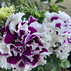 おはよう〜 ございます😊👋 梅雨の走りのような .˖٭🐸☂ばかりデス…💦🌧️💧 1⃣2⃣3⃣4⃣ ✫ペチュニア✫ モンローウォーク 〈ベールモーブ・シルバー〉 ❥花芳さんが育種した 渋さと甘さが 同居する不思議な アンティーク調の グラデーションカラー💜🤍 ❥気温によって変化する花色♪ ❥うっとりするような 気品ある色に ヒトメボレ(´♡_♡`)𖤐ˊ˗💓 ❀𓂃 𓈒𓏸❀𓂃 𓈒𓏸❀𓂃 𓈒𓏸 にっこり^^ 日曜日☆ すてきな一日に なりますように🤗🍀⁺.˖*