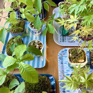 コナラの小品盆栽 株立ちが多層に葉を広げてきた
