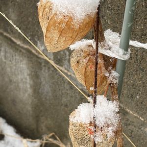 ホオズキ ナス科ホオズキ属 雪の中の鬼灯。