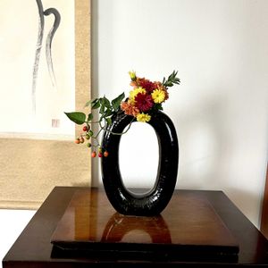 実のついたものが目立つようになりました。霜も降りたので、グリーンが少なくなって行きます。今週もよろしくお願いします💕 1、変形花器に秋を生けます 花器: 🇺🇸製黒い変形花器 花材: ナイトシェード(犬ホオズキの仲間)、小菊3種 2、ホオズキにお日様が当たり、きれいでした