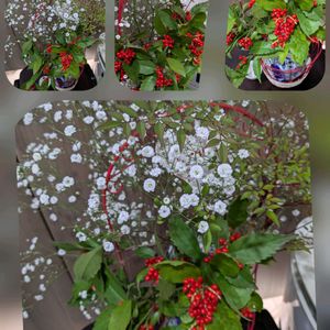 《今日のお花》を、 見るのを忘れていまし た。 昨夜生けて、 何処に置こうかな…と、 思っていた生け花 朝、玄関で萎れていまし た。 こんな事は初めてでし た。 私達も苦しかったもの… 今日のお花センリョウで す。🔴昨夜🤳✨パシャ