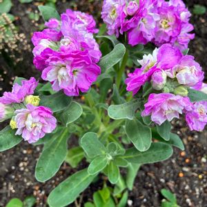 夕暮れ時、道路沿いの花壇にて、「八重咲きストック」を始め色んなお花をパチリ!📸🩷🌸🤍🌿😄🤗🌇✌️