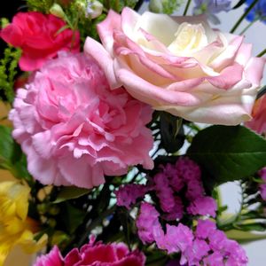 頂き物 お花は嬉しいなぁー ピンクのカーネーションがビック!10センチはある ゴージャスで綺麗✨
