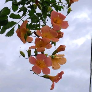 『名声』『名誉』『栄光』。ラッパ状の花姿が、英雄や勝者を祝福する際のファンファーレを吹く、トランペットに似ていることに由来するといわれています。色鮮やかな、つる性の植物です。