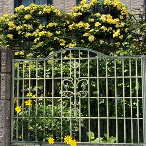 モッコウバラとジャスミンがかなり、花が咲いてます😊 東側の左側が少し、開花が遅いようで、ジャスミンとその下のユリオプスデージーがまだもう少しかな? これが揃って咲いて欲しいんだけど…(4月18日に💕❣️)