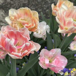 八重咲きチューリップも満開🌷 大好きなラベンダー色のシバザクラも満開に💜 春ですね〜♪( ´▽`)♡