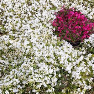 『一致』『合意』『臆病な心』。小さな花を密集して咲かせる様子にちなむといわれています。サクラに似た花を、敷き詰めたように一面に咲かせ、その後は常緑の茎葉が芝生のように広がることから名づけられました。