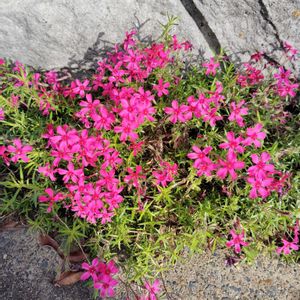おはようございます 風の通り道にシバザクラがそれに 耐えて咲いています ハルジオン フランスギクも花盛り🤗
